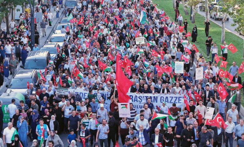 Binlerce kişi, Gazze’de yaşanan insanlık dramına dikkat çekmek ve Filistin halkının yanında olduklarını göstermek amacıyla bir araya geldi.