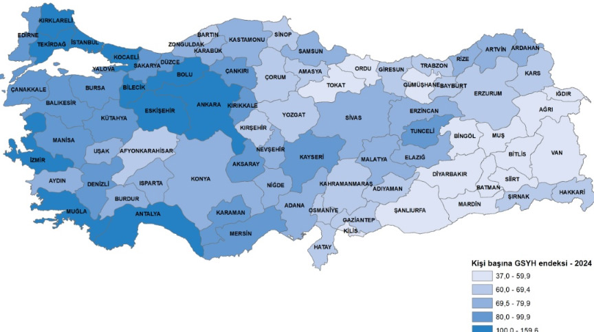 Kişi başına GSYH’de ise İstanbul (802.669 TL), Kocaeli (788.873 TL) ve Ankara (788.859 TL) en yüksek değerlere ulaştı. Van, Ağrı ve Şanlıurfa ise kişi başı gelirin en düşük olduğu iller oldu.